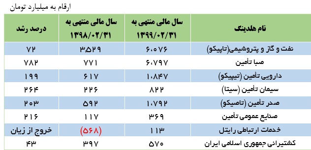 ب) رشد چشمگیر سود خالص شرکت اصلی هلدینگهای تابعه شستا در سال مالی منتهی به۱۳۹۹/۰۲/۳۱ نسبت به سال مالی منتهی به ۱۳۹۸/۰۲/۳۱: