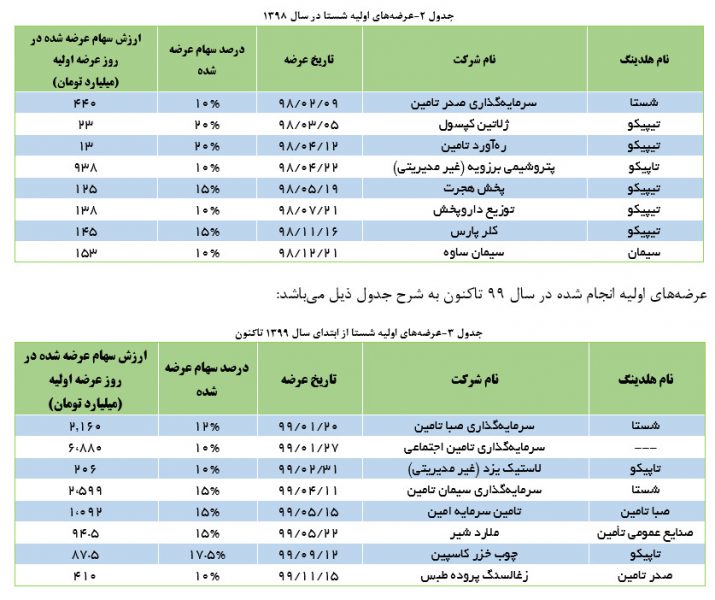 عرضههای اولیه انجام شده در سال ۹۸ به شرح جدول روبرو میباشد.