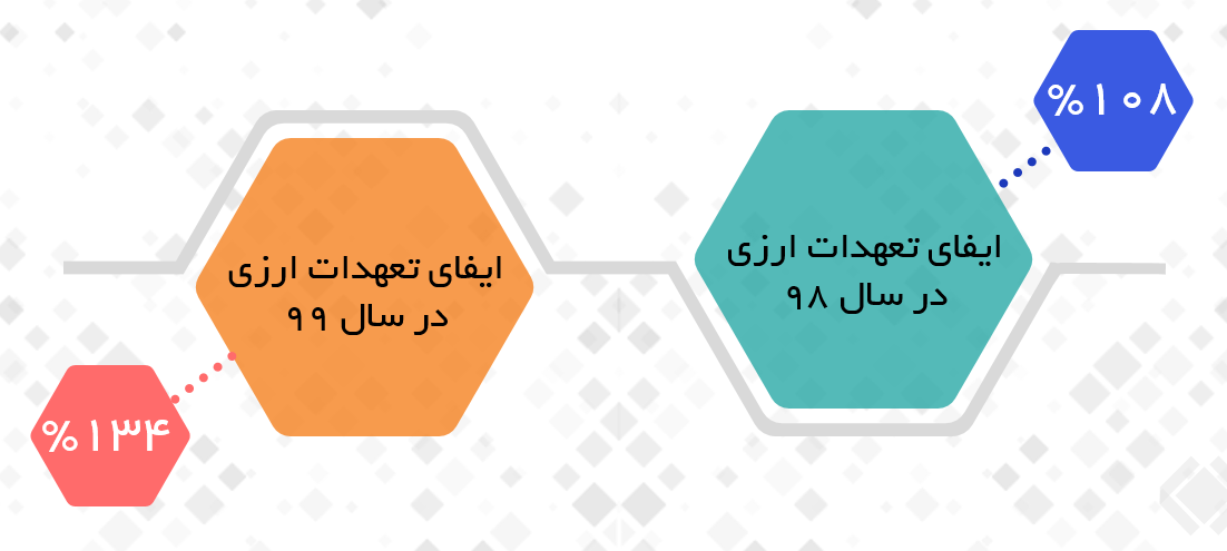 ۶- ایفای کامل تعهدات ارزی شرکتهای تابعه شستا در سامانه نیما به میزان ۱۰۸ درصد در سال ۹۸ و نیز ۱۳۴ درصد در سال ۹۹